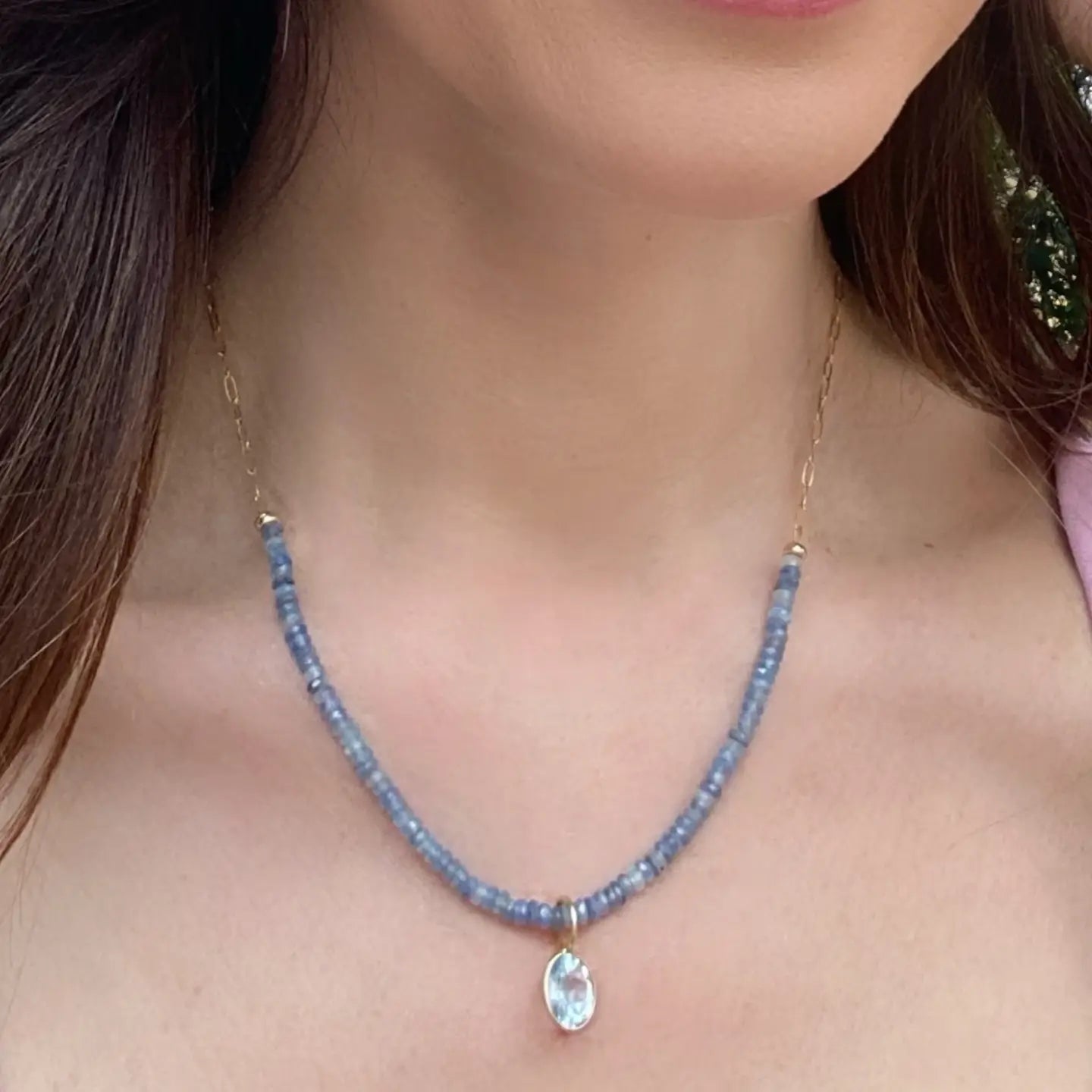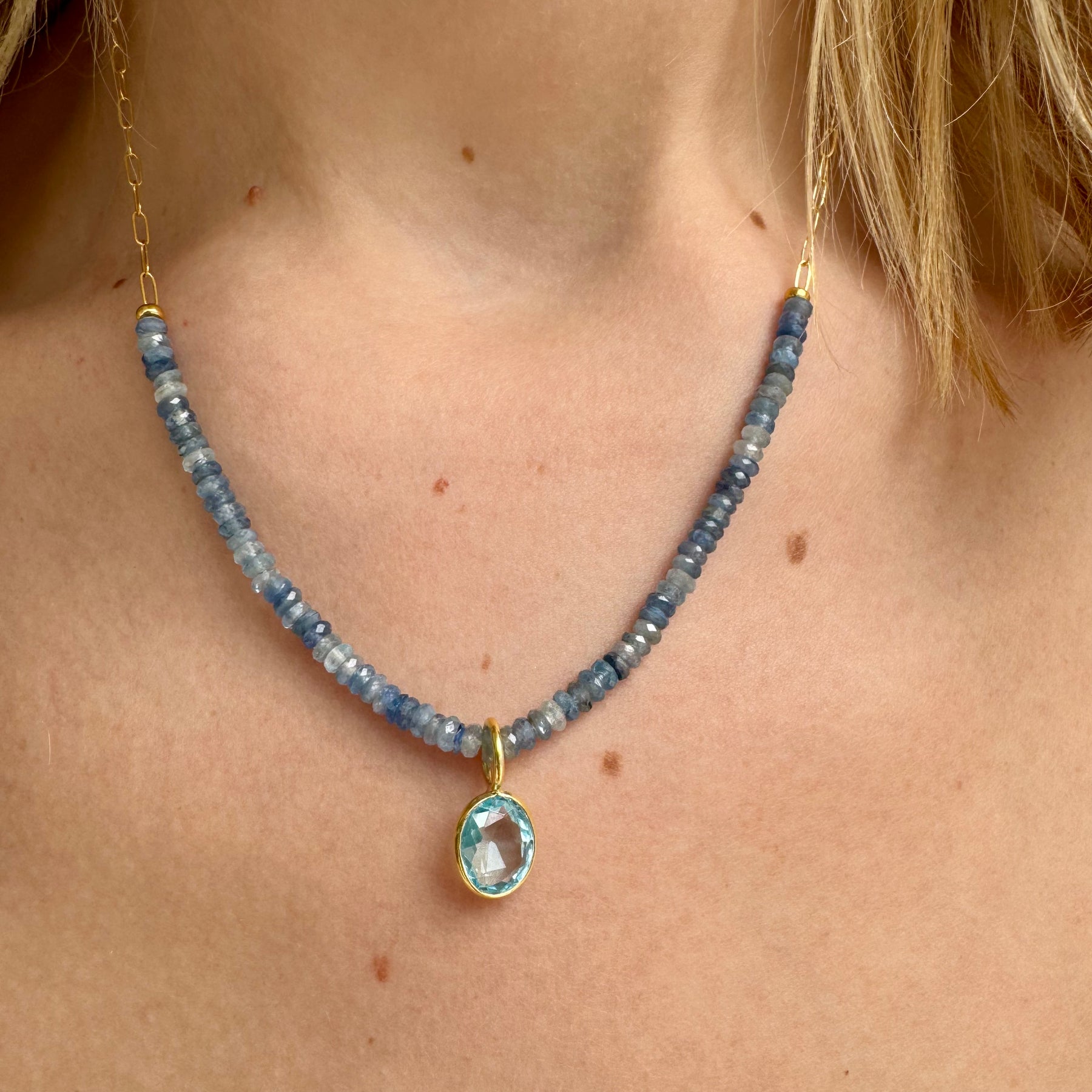 Beaded Paperclip Necklace - Blue Topaz & Kyanite