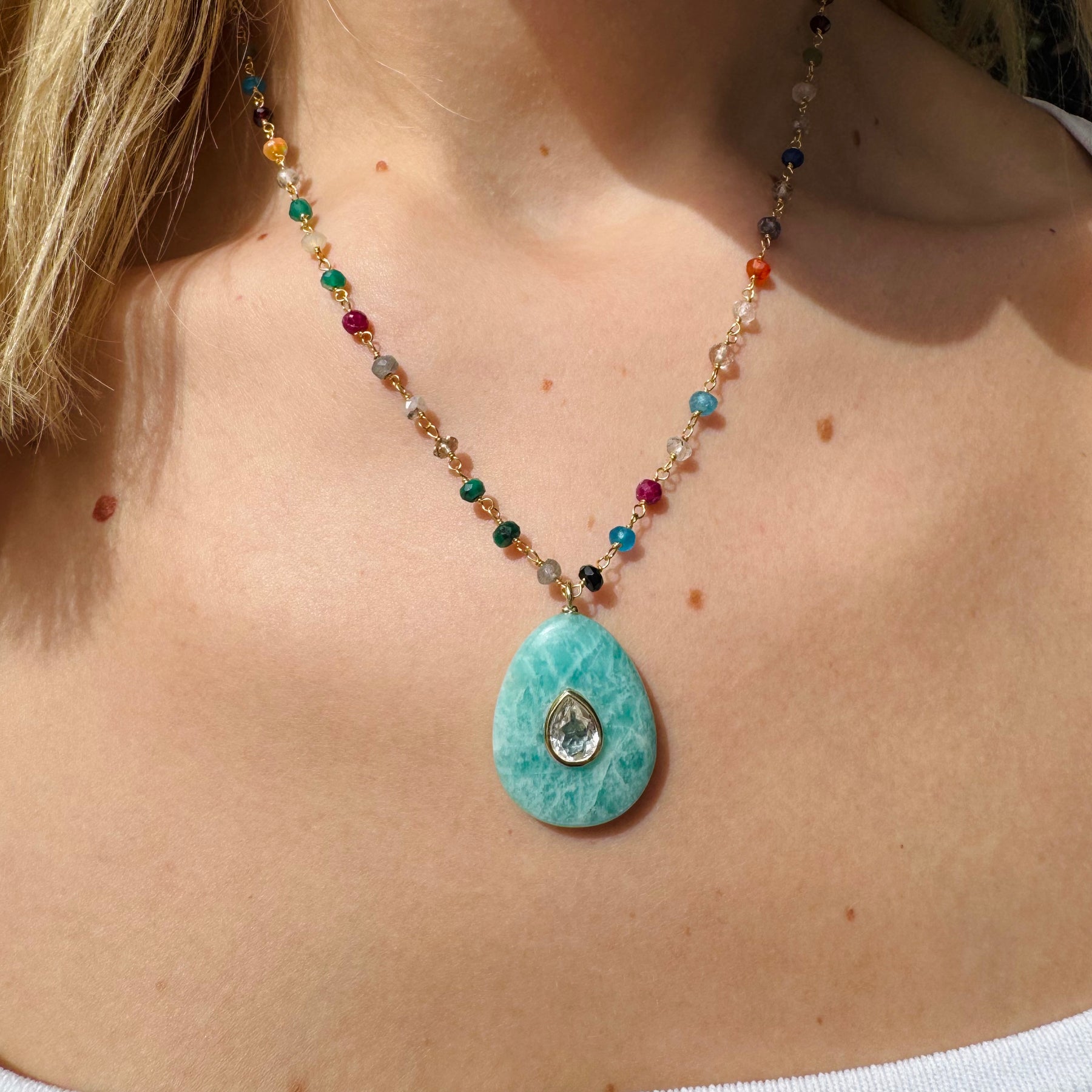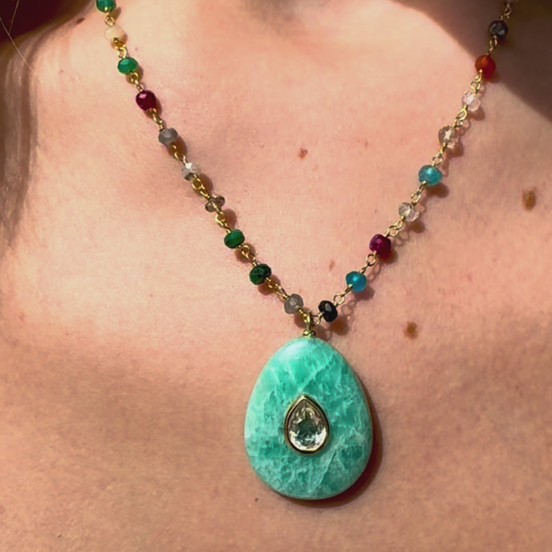 Amazonite & Topaz Pear Rainbow Necklace
