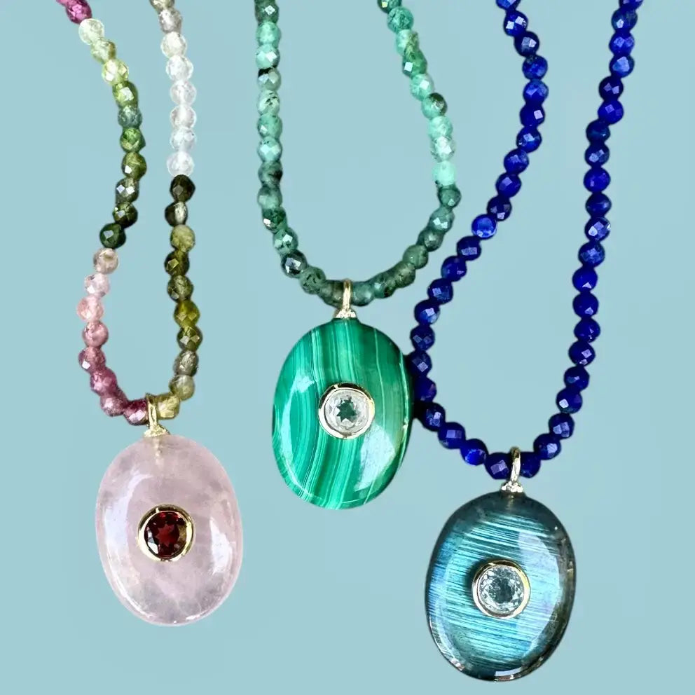 Triple Beaded Choker - Chalcedony & Sapphire - Lauren Sigman Collection