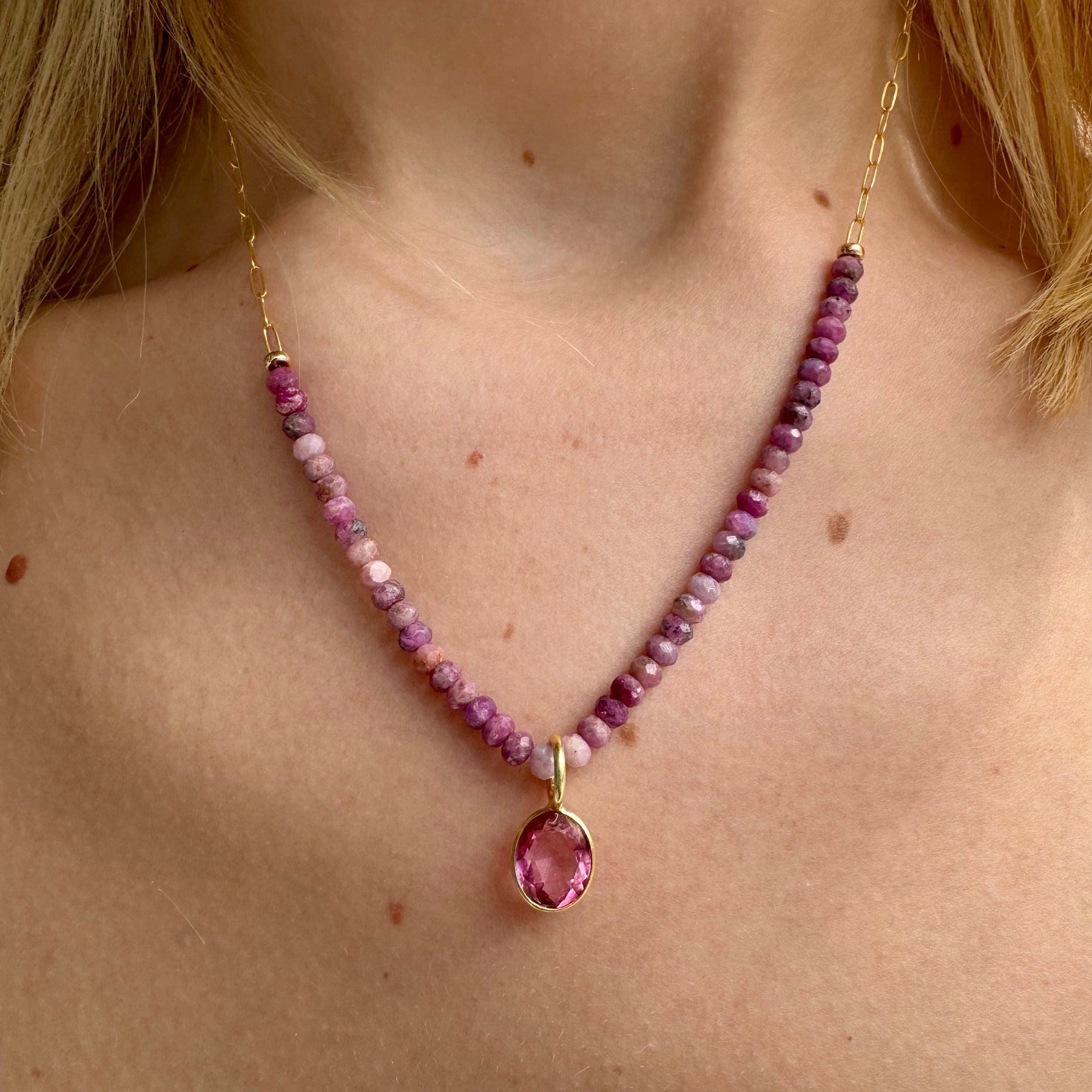 Beaded Paperclip Necklace - Pink Topaz & Ruby