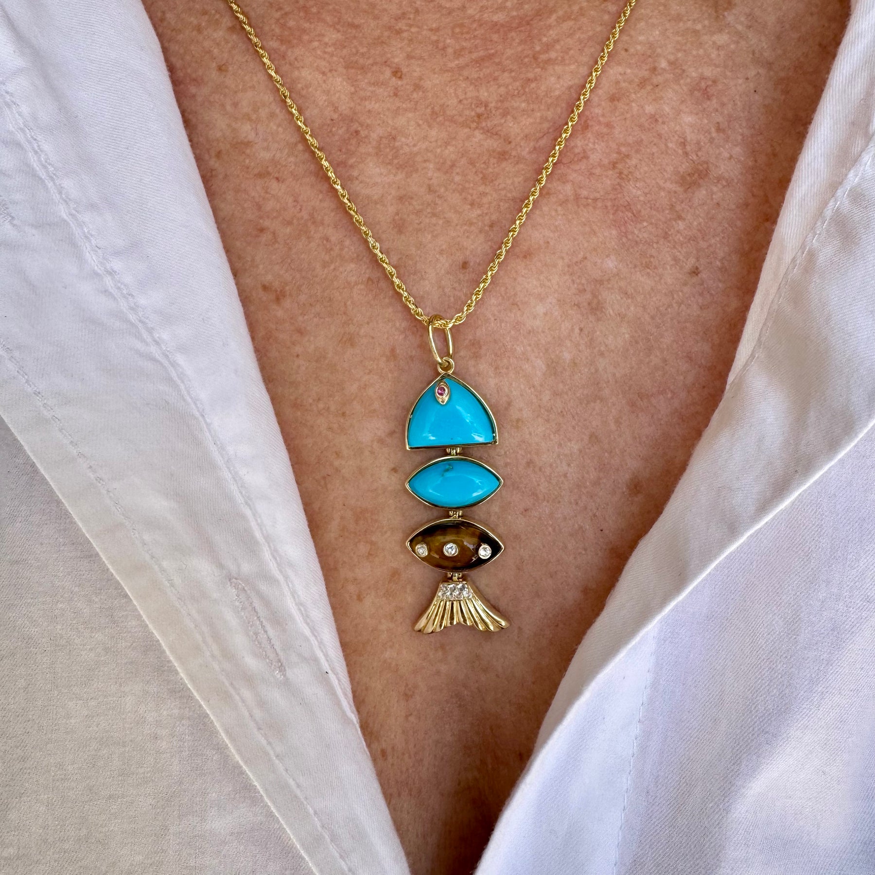 Prosperity Fish Necklace / Turquoise & Tigers Eye - Lauren Sigman Collection