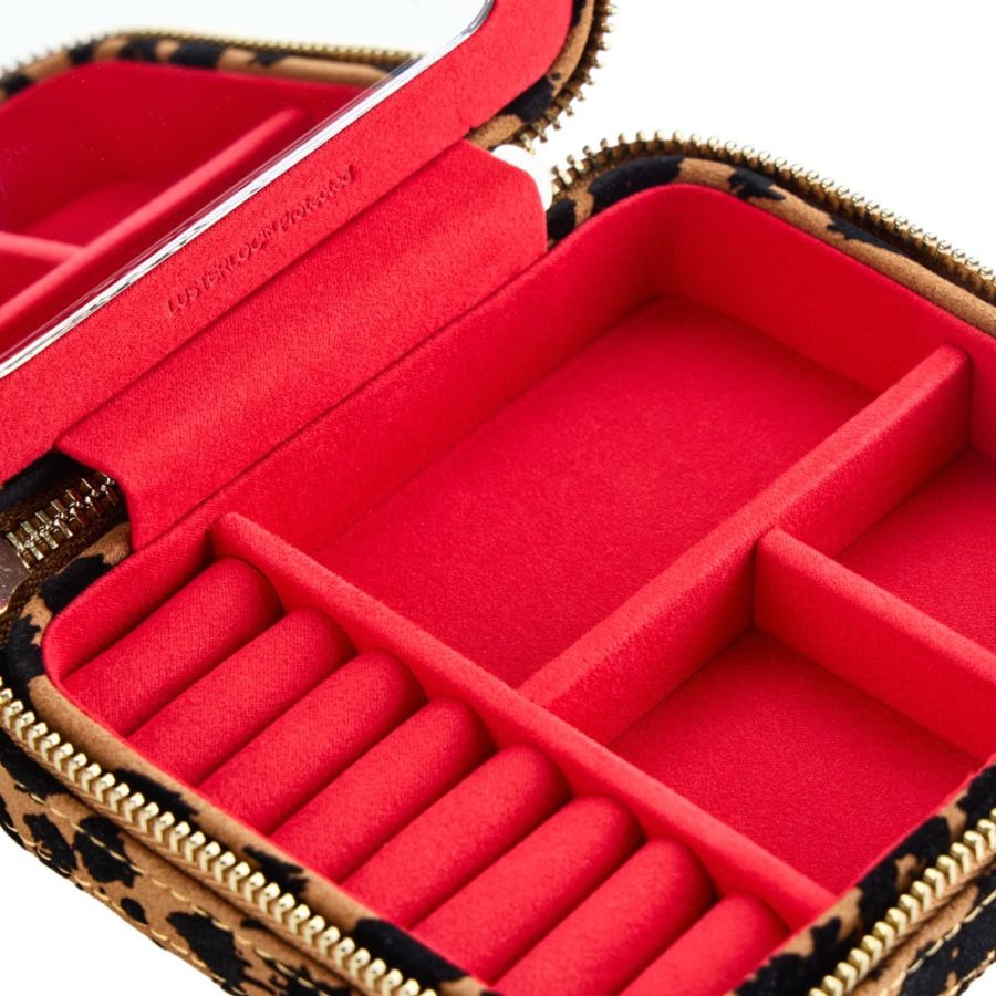 Travel with quiet confidence. Compact yet brilliantly organised, the Savanna Travel Case slips effortlessly into any bag while keeping your jewellery impeccably arranged and protected. Leopard print brings the attitude; the signature red LusterLoc™™ interior delivers the ultimate protection.