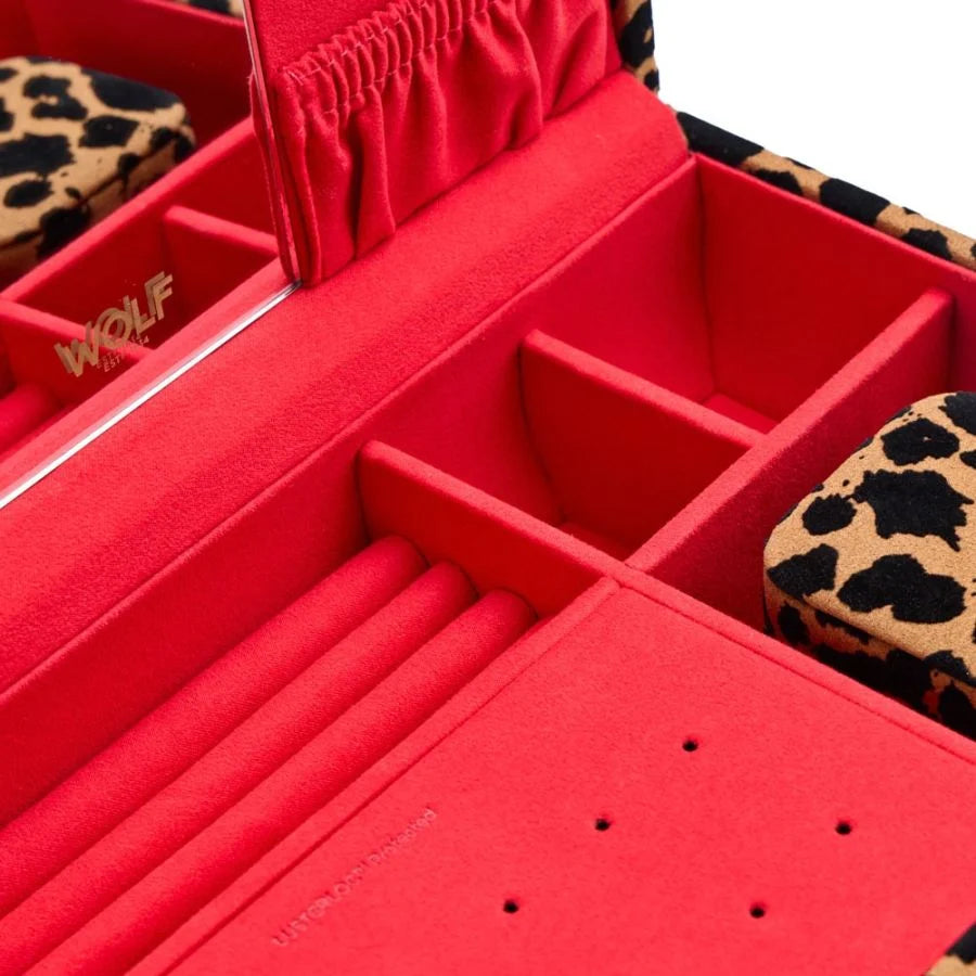 The Savanna Medium Jewelry Box is the ultimate dressing table icon. Its timeless leopard print exterior feels instantly current, while the dramatic red LusterLoc™ interior protects every piece from tarnish and scratches. Sophisticated and bold; this is where statement meets everyday indulgence.