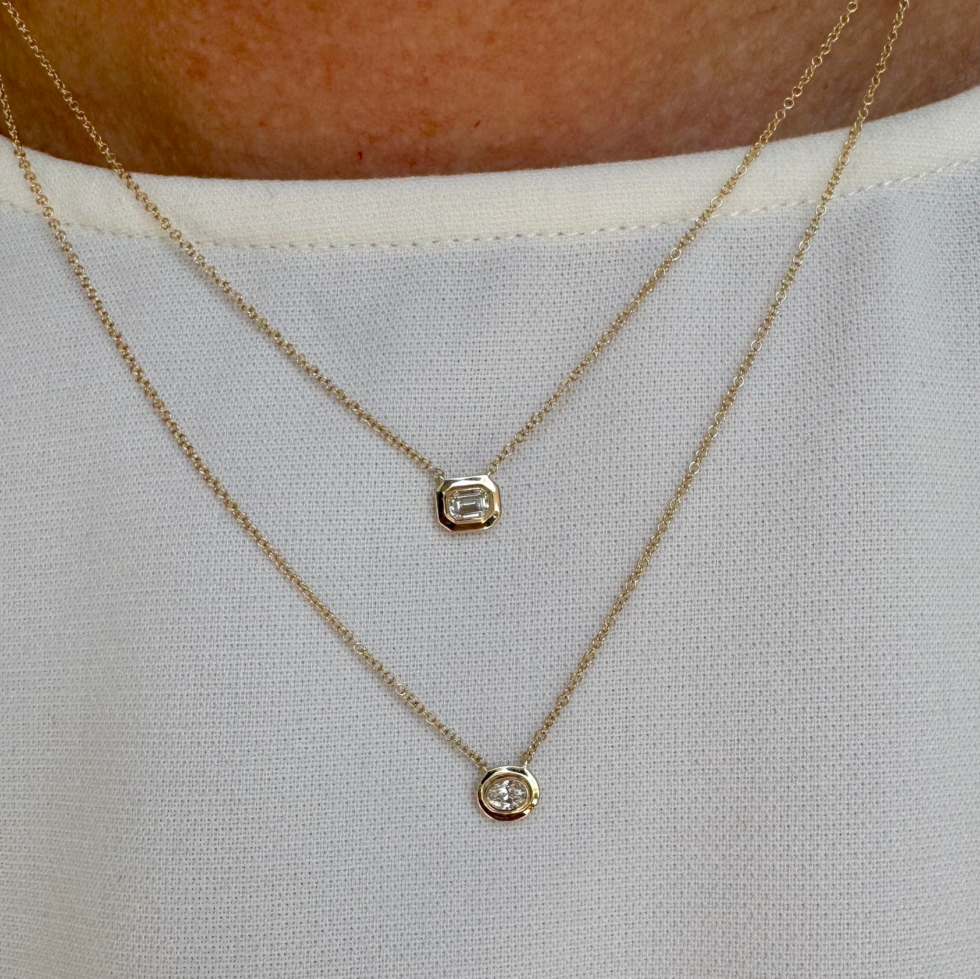 Our Emerald Cut Diamond necklace is simple & timeless.