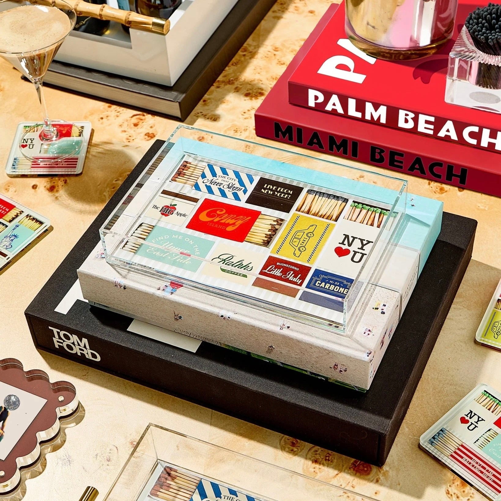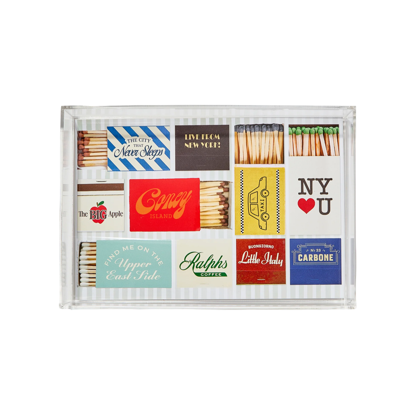 I want to be apart if it, New York! Take a slice of the Big Apple with you wherever you go with our New York Matchbook Small Acrylic Tray! Perfect for serving drinks, displaying trinkets, or organizing clutter. Cheers to the city that never sleeps!