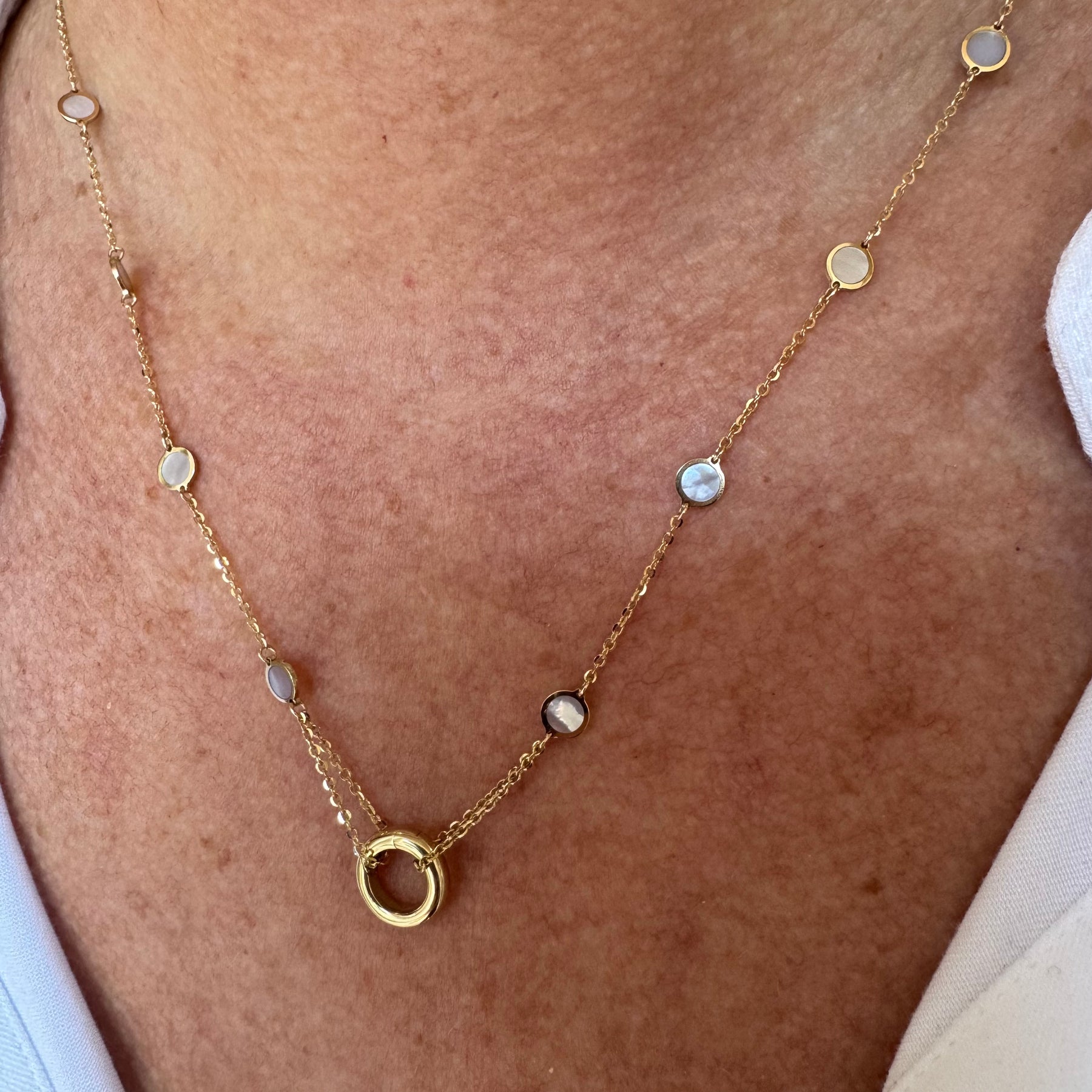 Mother of Pearl Disk and Carabiner Necklace